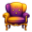 - Fauteuils : largeur 60 cm, profondeur 58 cm, hauteur 77 cm