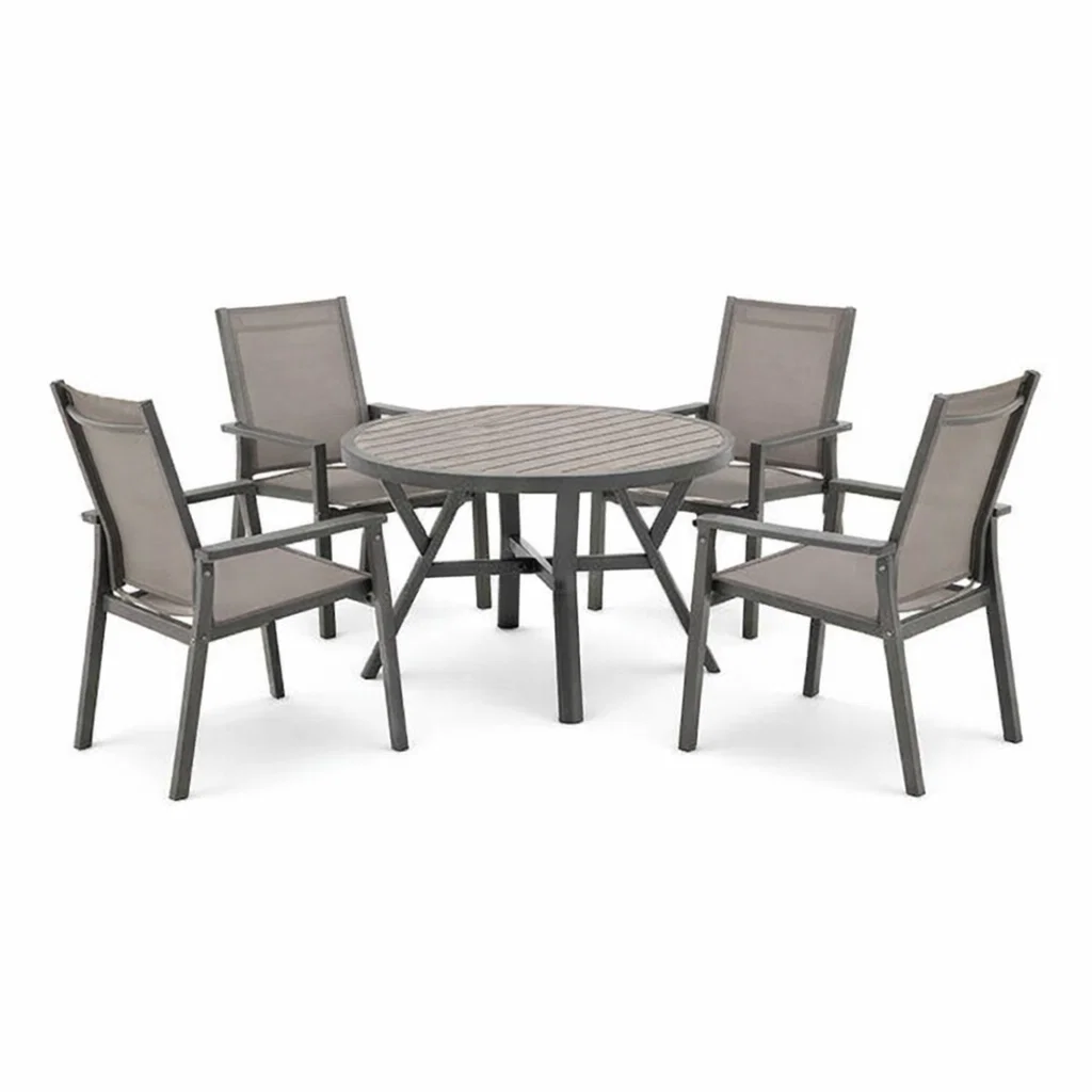 Aluminium Ensemble table et chaises avec Table Ronde et Quatre Chaises en Toile Grise