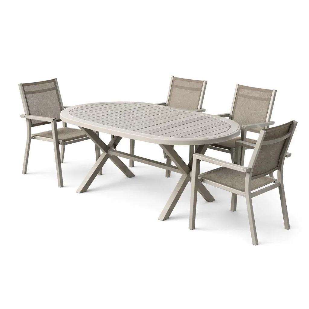 Aluminium et Textilène Beige Ensemble table et chaises avec Table Ovale et Quatre Chaises