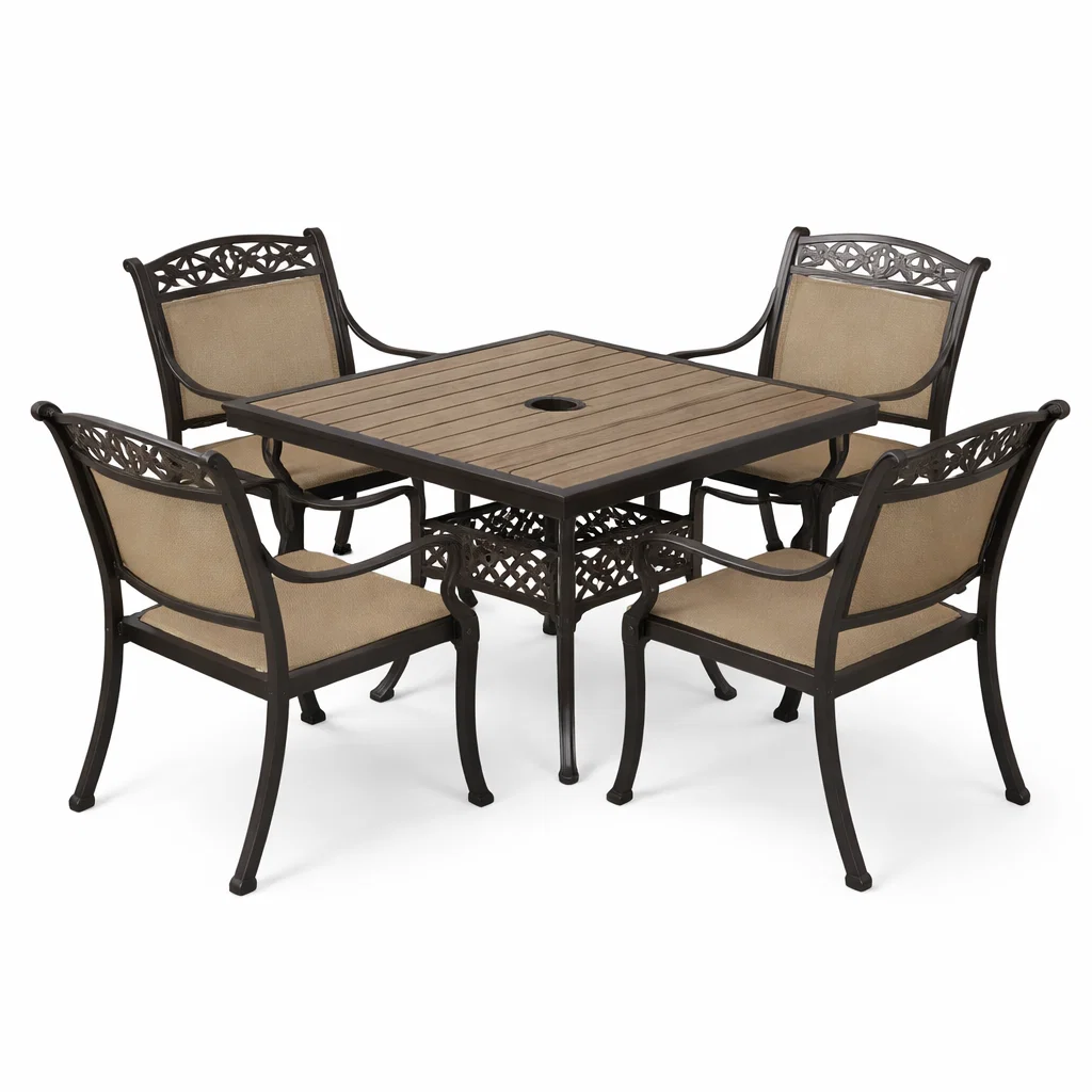 Aluminium et Textilène Marron Noir Ensemble table et chaises Extérieur