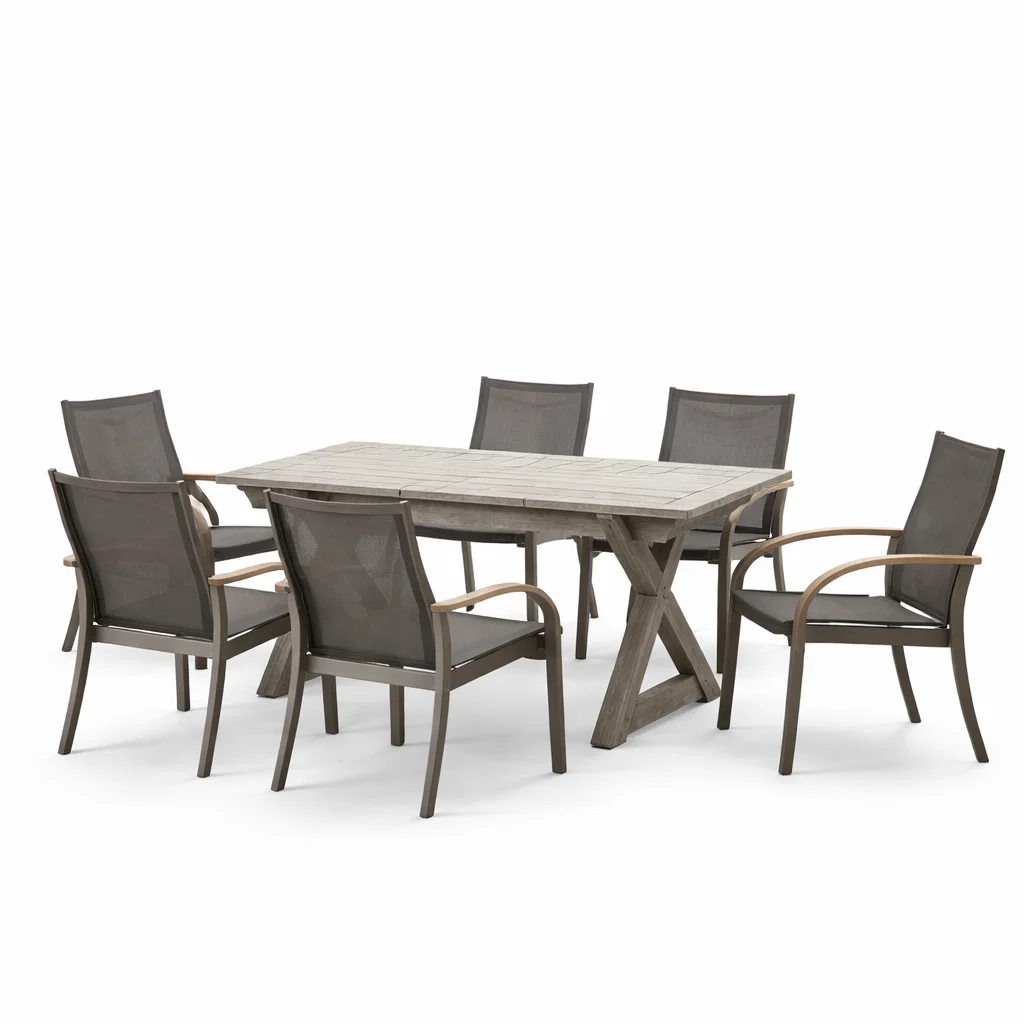 Bois et Aluminium Gris Ensemble table et chaises