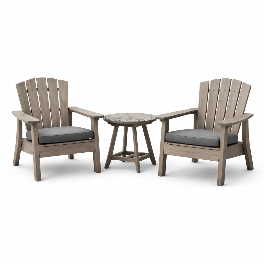 Ensemble comprenant 2 chaises Adirondack et 1 table ronde.