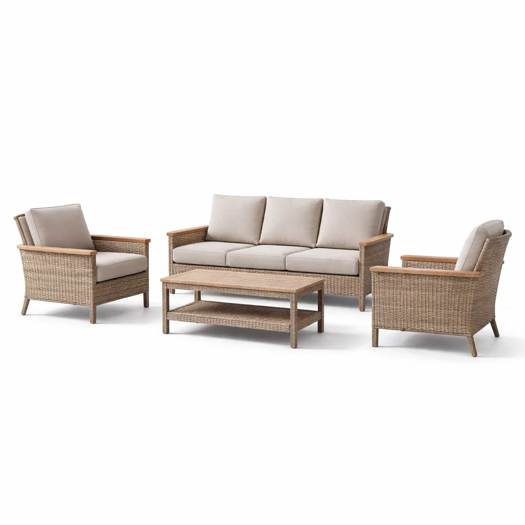 Matériau principal : Résine tressée avec accoudoirs en bois naturel.