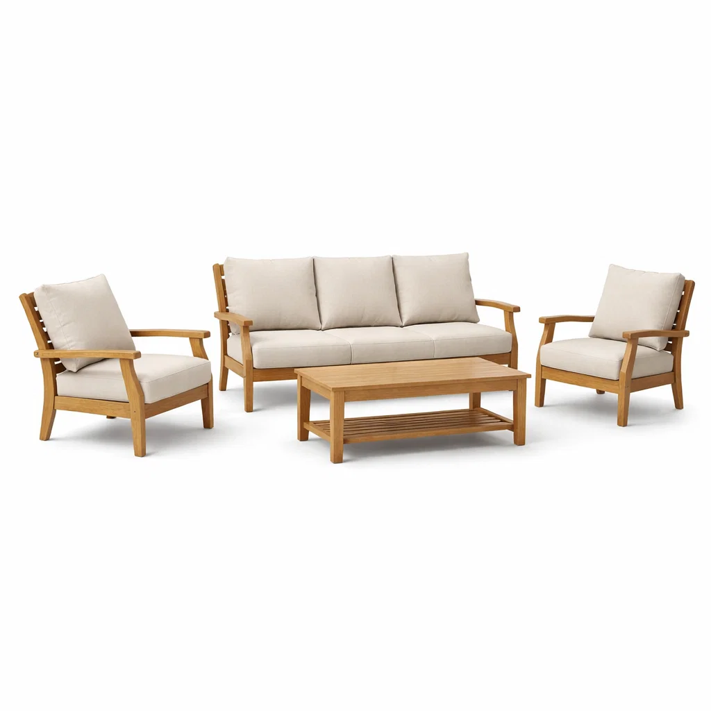 - Matériau: Bois de teck, rembourrage des coussins en polyester
