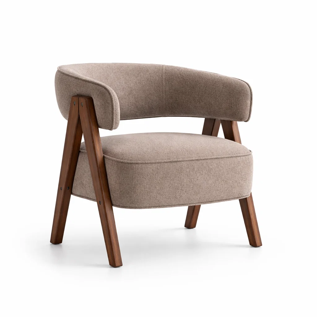 Tissu Polyester Brun Fauteuil avec Cadre en Bois