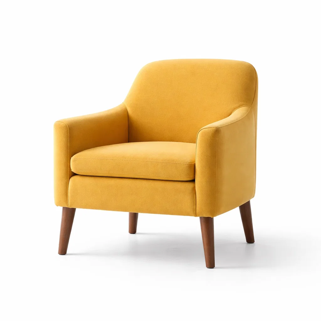 Ce fauteuil rembourré dispose d'un dossier et d'accoudoirs.